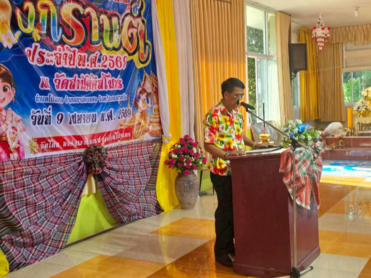 โครงการจัดงานสืบสานประเพณีวันสงกรานต์ ประจำปี พ.ศ.2569วันที่9 เมษายน 2569เวลา 09.00 น. นำโดย นายเรียงใจสูงเนิน นายกองค์การบริหารส่วนตำบลโป่งแดง เป็นประธานเปิดโครงการจัดงานสืบสานประเพณีสงกรานต์ ประจำปี พ.ศ.2569 โดยมี คณะผู้บริหาร สมาชิกสภา อบต. ผู้นำ อสม. และชมรมผู้สูงอายุ พร้อมด้วยผู้สูงอายุตำบลโป่งแดง เข้าร่วมกิจกรรมโดยมีวัตถุประสงค์เพื่อส่งเสริมและสนับสนุนให้ผู้สูงอายุมีคุณภาพชีวิตที่ดีและดำรงชีวิตในสังคมได้อย่างปกติสุข บำรุงรักษาส่งเสริมอนุรักษ์วัฒนธรรมอันดีงามของท้องถิ่น สืบทอดวัฒนธรรมให้คงอยู่สืบไป อัพเดทเมื่อ : 09-04-2026 14:42:05 |